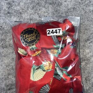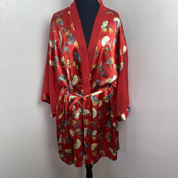 Vintage Delicates Robe Women's XL Red Floral Asian Fan Sensu Sheer Sleeve Y2K