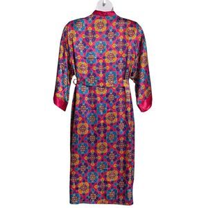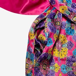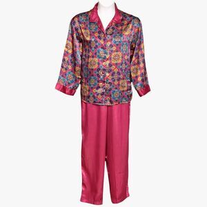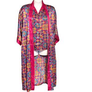 Vintage Delicates Satin Pajama Set Colorful Pink Paisley PJs & Robe Medium 12-14