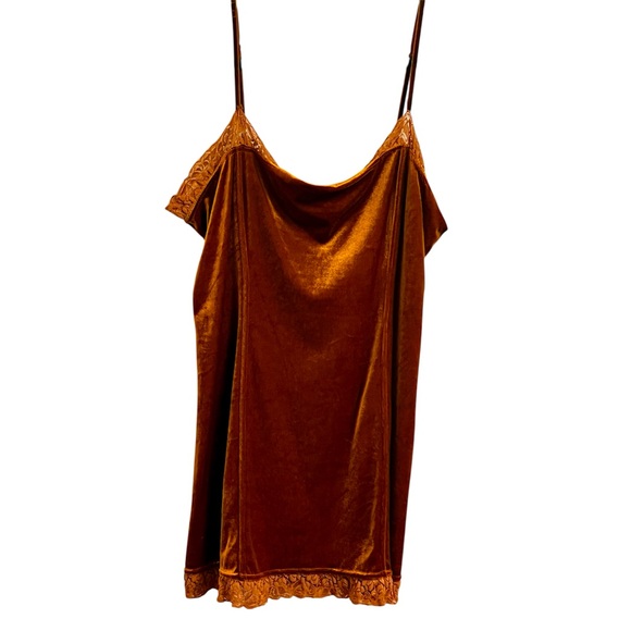 Vintage Delicates Velvet Feel Lace Nightgown Lingerie Slip Dress in Rich Brown