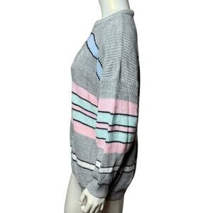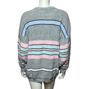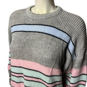 Vintage Delivery Ltd. Gray Pastel Striped Oversized Sweater Made in USA Chunky