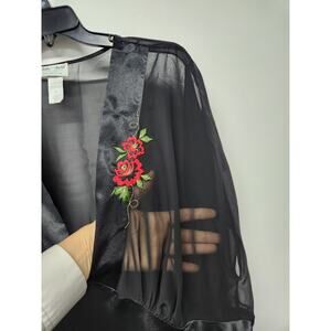Vintage Delta Burke Collection Women's Robe/Nightgown Set, Satin Mesh Sheer, Embroidered Roses