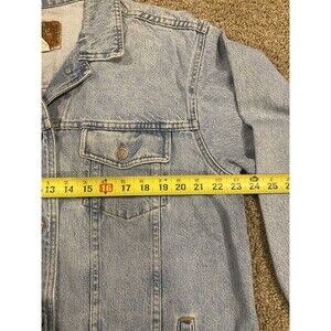 This vintage Delta Burke Delta Blues denim jacket is a classic workwear piece made in the USA. The jacket features a button closure and is crafted from denim fabric with a blue color. It has a size L and includes button accents on the outer shell material. The jacket has a timeless denim style with a vintage touch, perfect for the winter, fall, and spring seasons. Showcasing a patriotic theme, this Delta Burke jacket is a staple for men's casual and workwear wardrobes.
