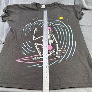 Vintage Delta Pro Weight Mens Size Large Tee Shirt Skeleton Surfer Graphic Black