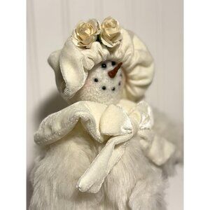 Vintage Delton Christmas Plush Snowman Lady And Snowman Lady w Child In Furs