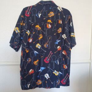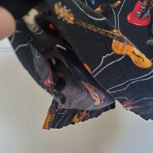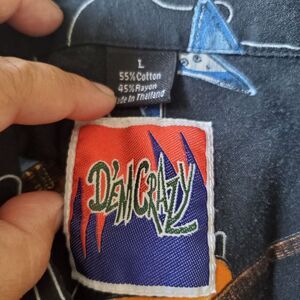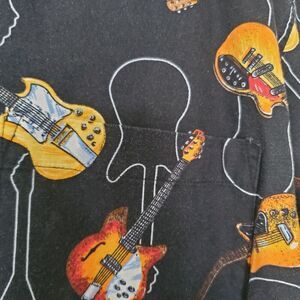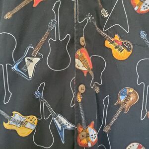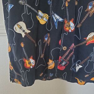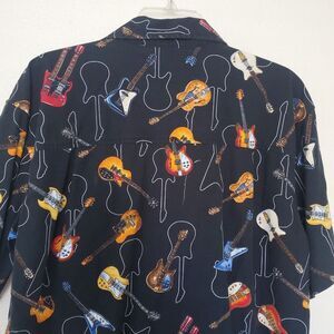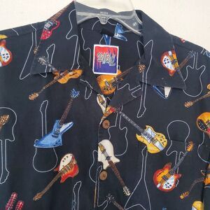 Vintage Dem Crazy Shirt Mens L Guitar All Over Print Button Up Short Sleeve Blk