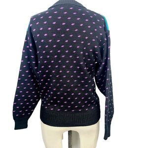 Vintage Demetre Ski Sweater S Black Fluorescent Multi Wool Blend Knit Mock Neck