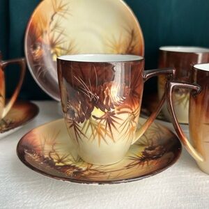 Set of 4 small demitasse small coffee or tea cup with saucers