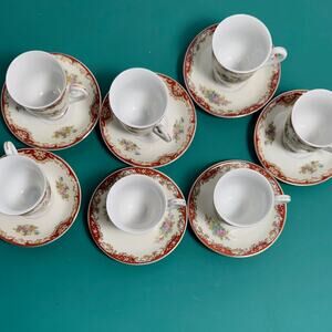 7 Sets of Demitasse Cups and Saucers. 3 Saucers have a slightly different design but you have to look close to notice