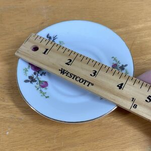 This vintage demitasse expresso porcelain tea cup and saucer set features a beautiful red rose pattern and gold trim, perfect for all occasions. The two-piece set includes a small round cup and saucer made of porcelain, hand-painted with a floral design that exudes Mid-Century Modernism style. The multicolor set is decorated with gold trim, making it a charming addition to any tea or coffee collection. Care instructions recommend hand washing, and this original set is ideal for those who appreciate vintage pieces with a touch of elegance.