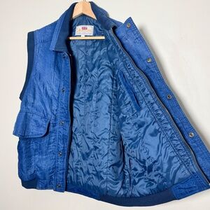 Vintage Demoiselle Famous Sports Wear Utility Full Zip Blue Vest Sz L