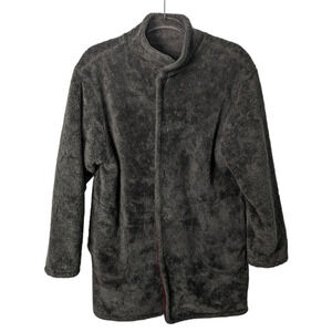 Vintage Denali Reversible Fleece Coat Leaf Pattern Grey Red Size Small