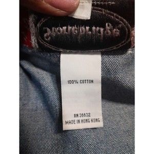 This vintage denim and floral vest by Stonebridge is a statement piece for any wardrobe. The vest features a beautiful floral pattern and is made from durable denim fabric. It is a size 14 and was manufactured in Hong Kong.