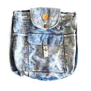 Vintage Denim Backpack Medium Stonewashed Casual Shoulder Bag Blue Handbags
