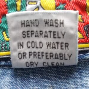 Vintage Denim Bejeweled Bat Wing Floral Embroidered Jean Jacket 80's Sz Large