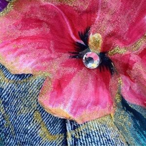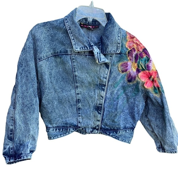 Vintage Denim Blue Jean Jacket Floral 80s Women’s Size Large