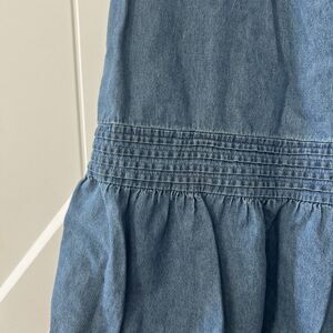 This vintage denim skirt from Dressbarn is perfect for any bohemian or retro themed festival. The skirt features a zip closure and is made from machine washable cotton denim fabric. The layered accents and tiered design give it a unique touch, while the midi length makes it versatile for both casual and formal occasions. This skirt is a size 12 and is ideal for any woman who wants to add a touch of western style to their wardrobe. The blue color and peasant style make it perfect for summer and spring seasons.