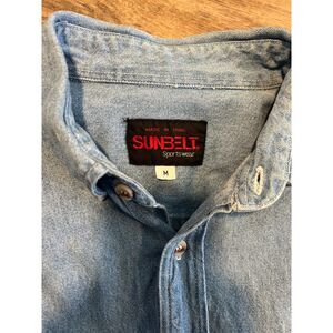 Vintage denim button up shirt! They don't make them like this anymore. It is the right blance between not being too heavy and not being too light. It runs on the larger size of the medium. It would be cute oversized too. #denimshirt #oversized #vintag #jean