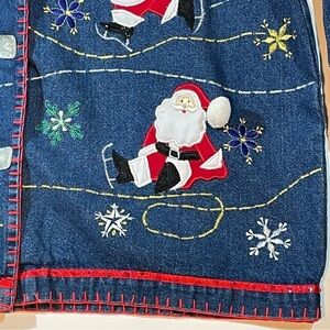 Vintage Denim Christmas jacket Shacket with Ice Skating Santa Claus S
