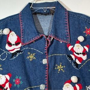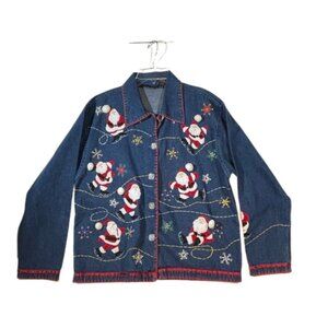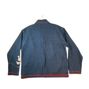 Christmas Denim Embroidered Jean Shirt Jacket Womens S Santa Skates