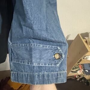 Vintage Denim & Co Duffle Chore Coat Womens 2XL Hooded 90s Long Blue Denim Togs
