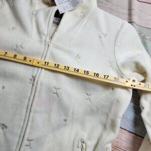 Vintage Denim & Co Womens M Ivory Fleece Zip Jacket Embroidered QVC New