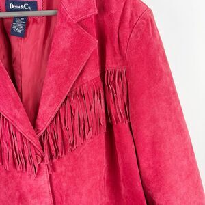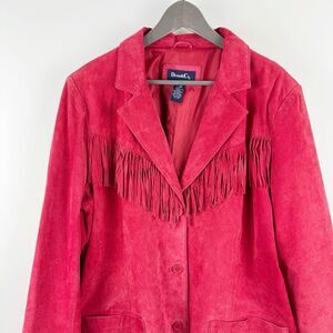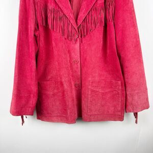 Vintage Denim & Co Women's Red Pink Suede Leather Fringe Western Cowgirl Jacket
