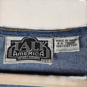 Step back into the 90s with this adorable vintage denim jumper dress featuring a beautifully embroidered Noah’s Ark scene with animals, clouds, and waves. Made by Talk America, this dress blends nostalgic charm with easy everyday wear.
