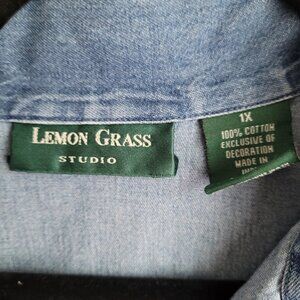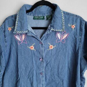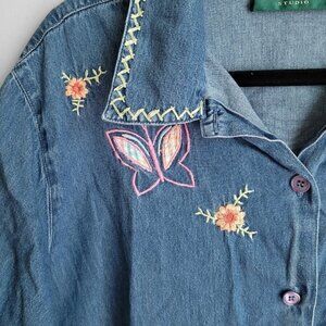 Vintage brand Lemon Grass Denim Floral Butterflies Embroidered 90s Y2K Short Sleeve Button Down Shirt Jacket