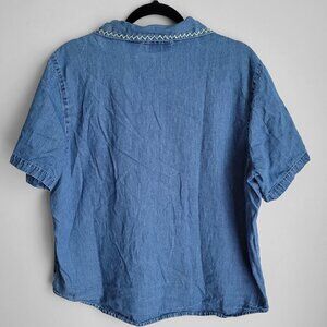 Vintage Denim Embroidered 90s Y2K Short Sleeve Button Down Shirt Jacket