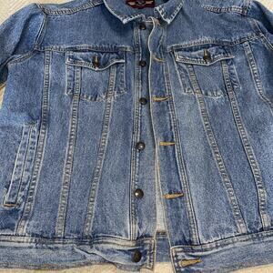 Vintage Denim Gear Men Size L Blue Denim Trucker Jacket Made In Hong Kong
