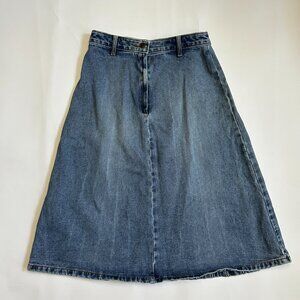 Vintage Denim Jean A Line Midi Skirt Women’s Size M High Waist Modest 90s Y2K