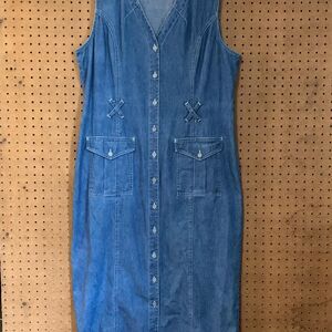 Vintage Denim Jean Dress Faded Glory Maxi Y2k Western utility button front Country Modest 90s Mom