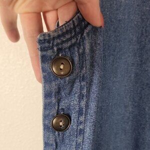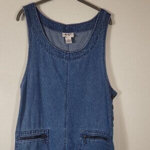 Vintage Denim Maxi Dress Size 14 Sleeveless Jumper Y2K 90s Pockets Chore Modest