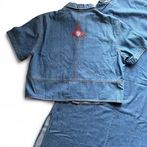 Vintage 80s Denim Maxi Dress Set w/ Hand-Painted Flowers & Butterflies