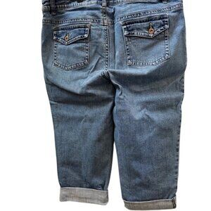 Crafted from durable denim, these mid-rise capri jeans feature a relaxed fit with rolled cuffs. Ideal for casual outings or everyday wear.
