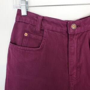 Features and description: denim jeans; mom jeans; high waisted; loose straight; cotton; purple