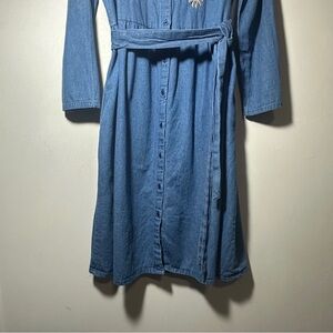 Vintage Denim Moves Midi Floral Embroidered Denim Dress with Belt Size Large