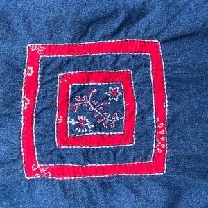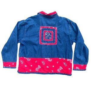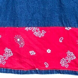 Vintage Denim Patchwork Red Bandana Jean Jacket Western Cowgirl Paisley Rodeo Equestrian