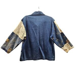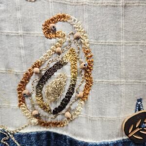 Vintage Denim Patchwork Shirt Embroidered design Wood Buttons Womens SM Hippy