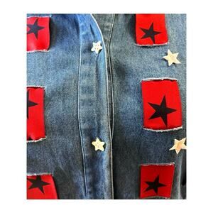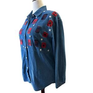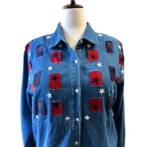 Vintage Denim Patriotic Patchwork Top Embellished Shirt Size XL Stars Jacket USA