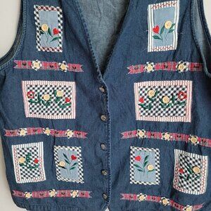 Vintage Brand Napa Valley Denim Quilted Patchwork Floral Embroidered 90s Y2K Vest Jacket Top