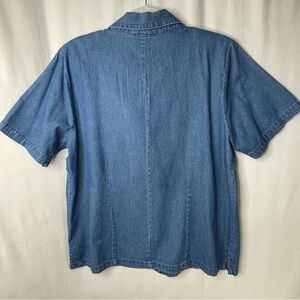 Vintage Denim Shirt Pineapple Palm Tree Embroidery Hawaiian Size L
