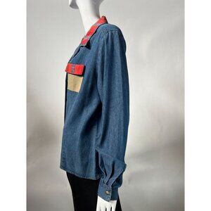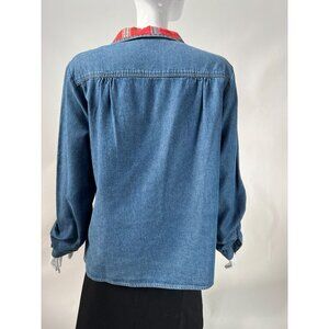Vintage Denim Shirt With Red Plaid Collar & Pocket Button-Up Size M/L By Thoma 1
