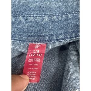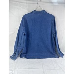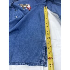 Vintage Denim Shirt Womens Large Santa Reindeer Christmas Embroidered 90s