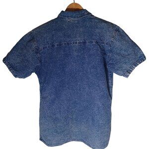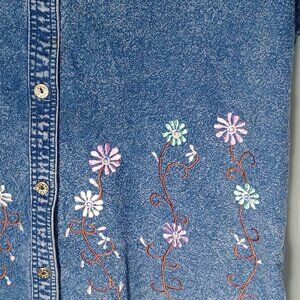 Vintage Denim Shirt Womens Medium Embroidered Floral Cottagecore Acid Wash 80s