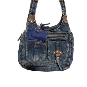 Vintage Denim Shoulder Bag with Multiple Pockets - Causal Jean Purse