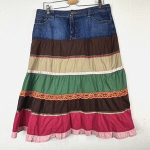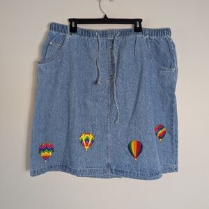 Vintage Denim Skirt Jeans w/ Fringe Aline Mini Distressed Frayed Edge L-XL