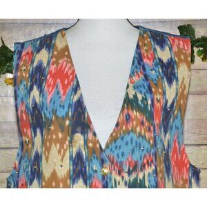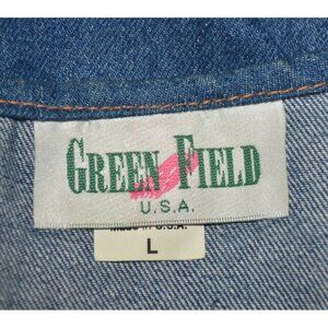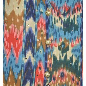 Vintage Denim Southwest Print Vest Rhinestone Accents USA Made Ladies L Western