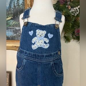 💙 Vintage Denim Teddy Bear appliqué Overalls