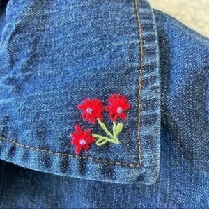 Vintage Denim Trucker Jean Jacket Floral Embroidery Cottagecore Large Flowers